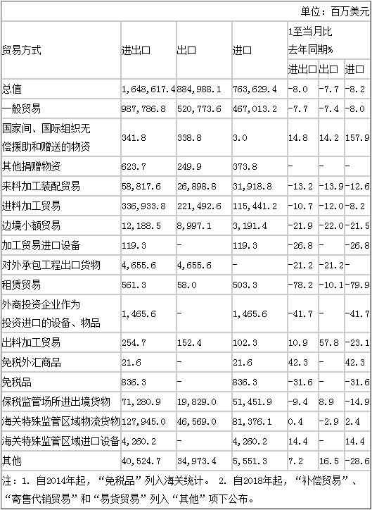 2020年1至5月进出口商品贸易方式总值表(美元值)